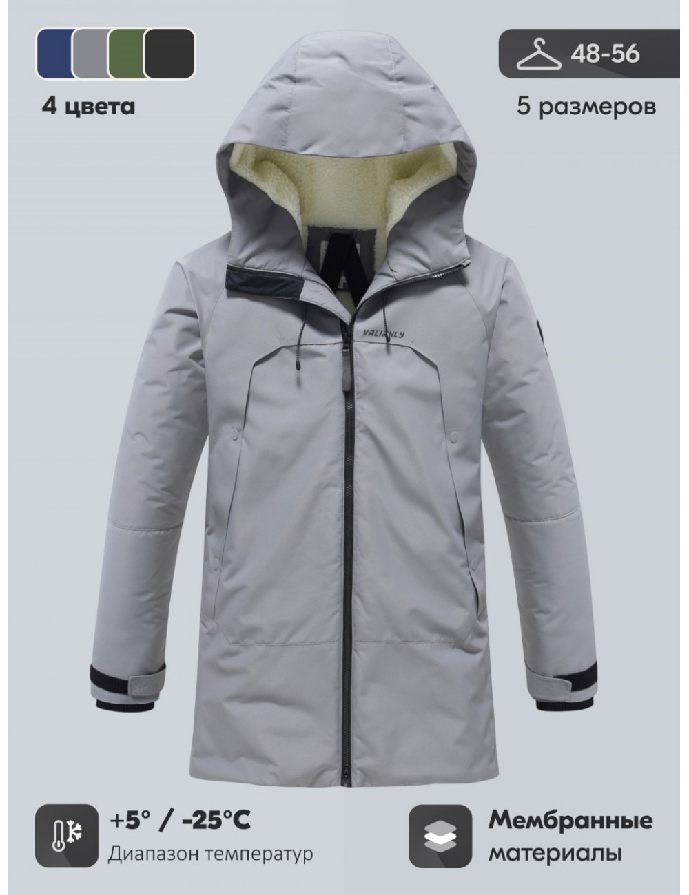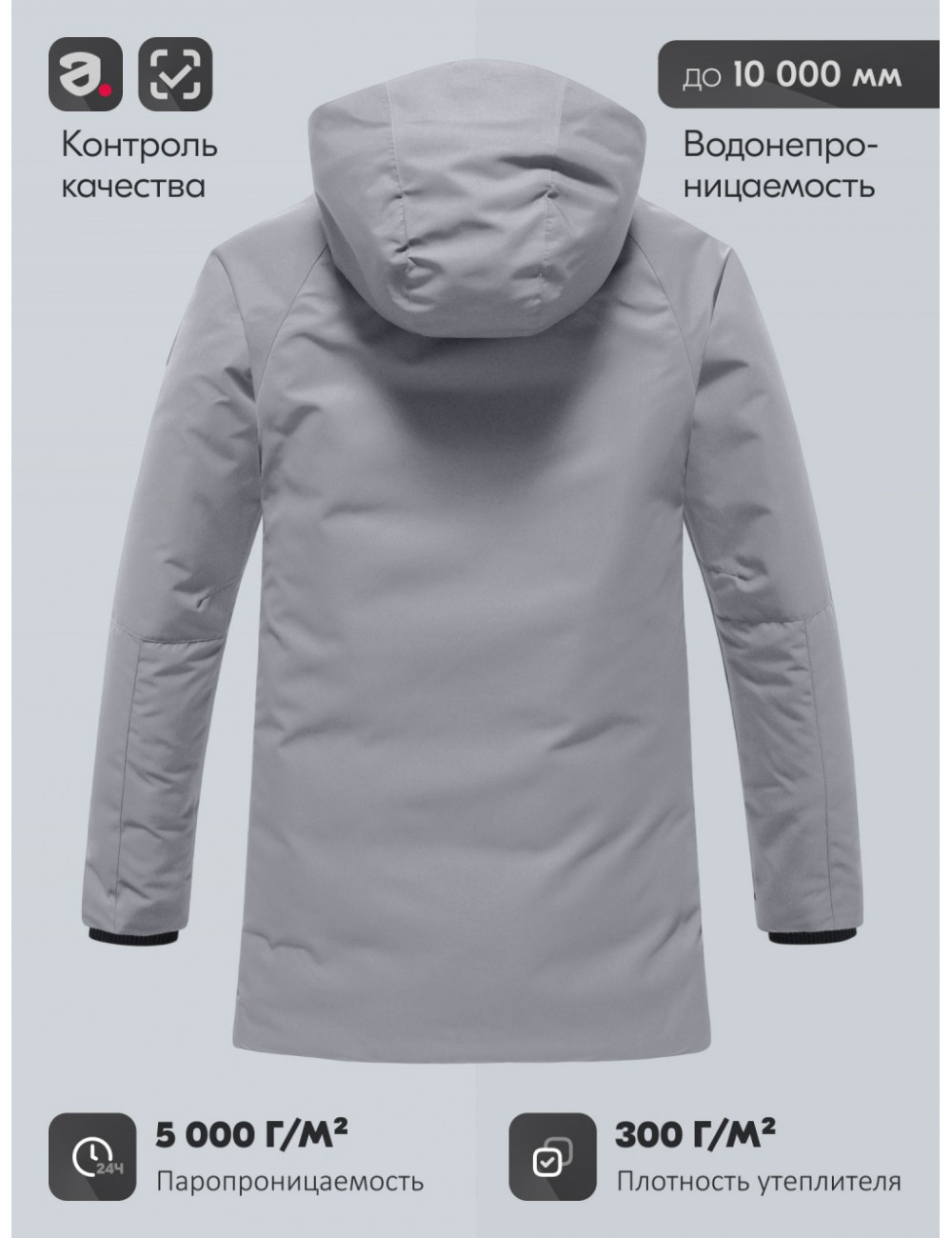 Свободный крой до колена обеспечивает свободу движений и комфорт. Плотная водоотталкивающая ткань с проклеенными швами защищает от ветра и влаги. Утеплитель тинсулейт плотностью 300 г/м² сохраняет тепло даже в сильные морозы, оставаясь лёгким и удобным.