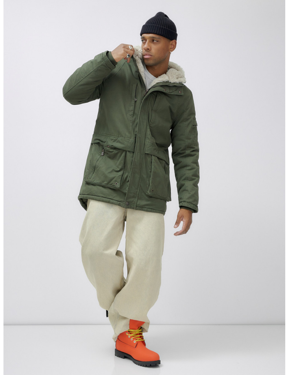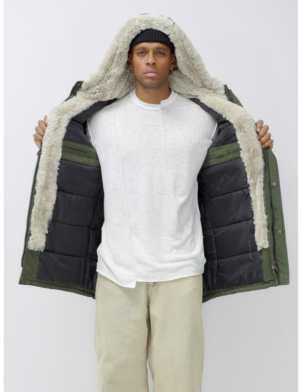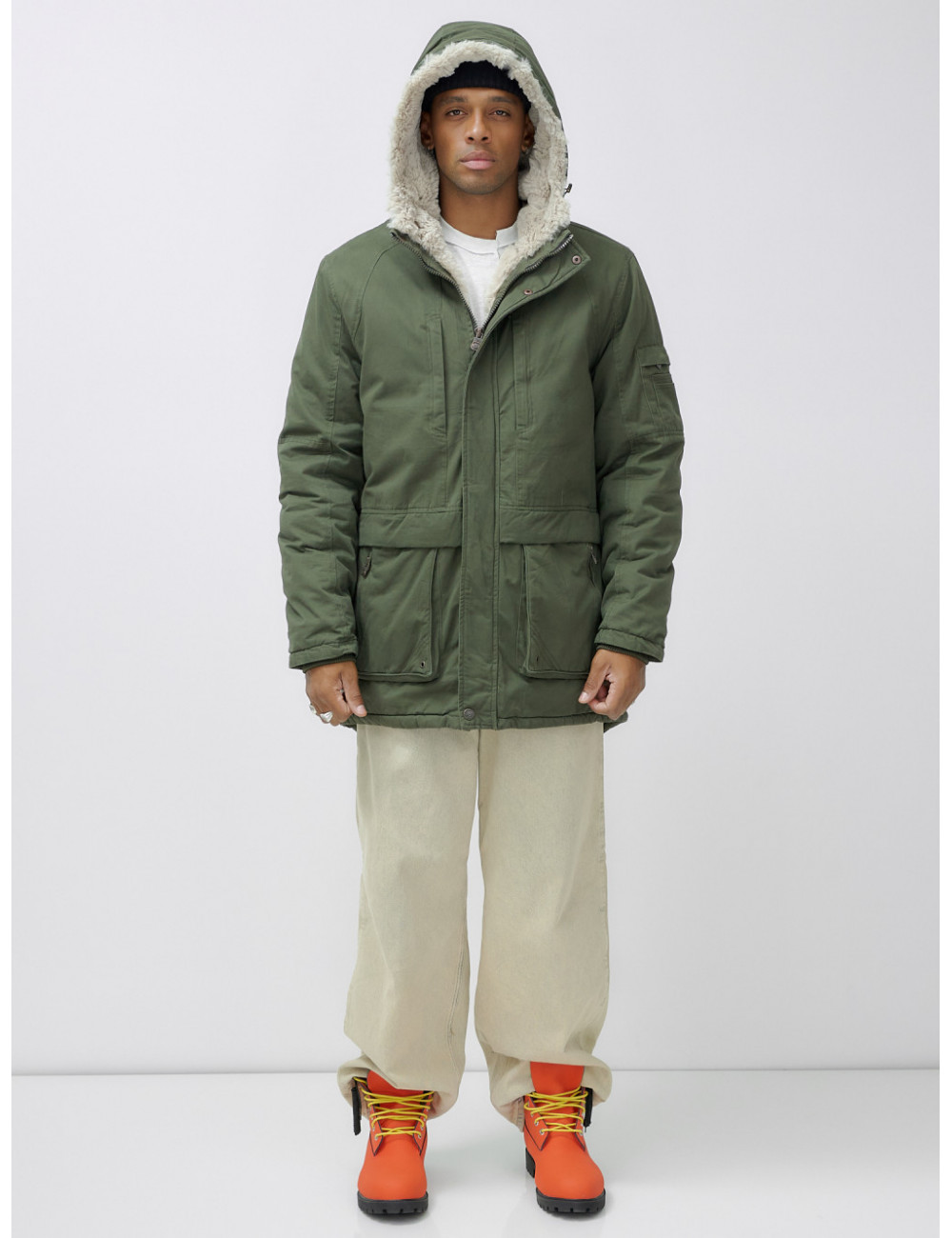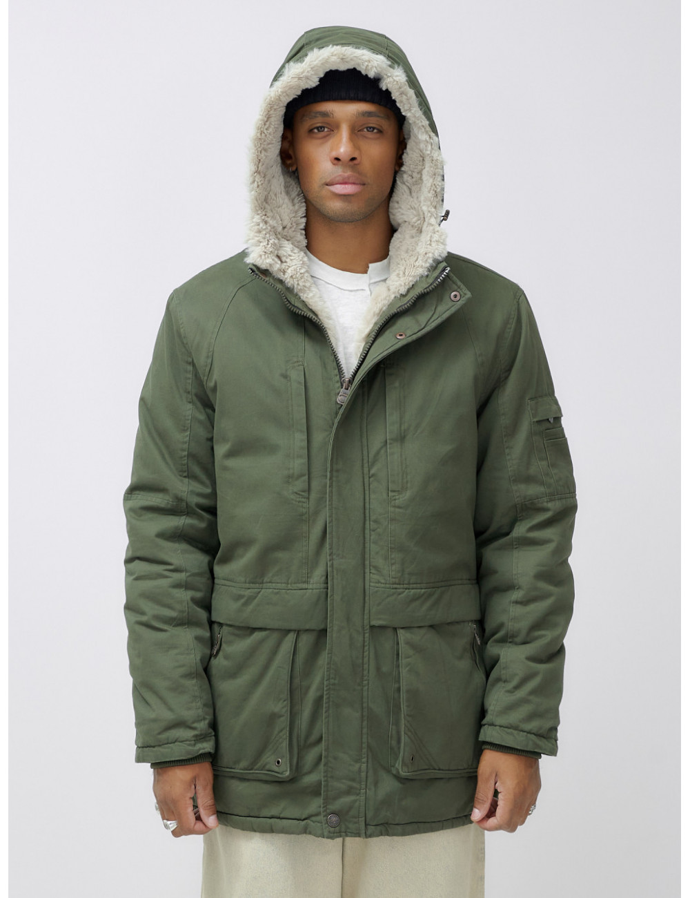 Доставка Мужская зимняя парка удлинённая с мехом, цвет хаки. по Тюмени и Тюменской области СДЭК