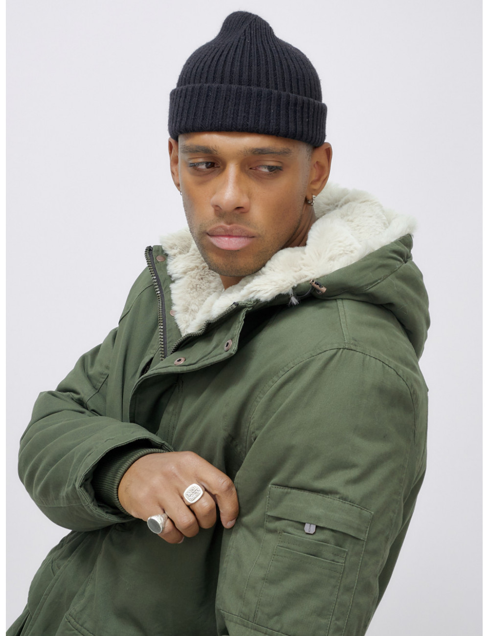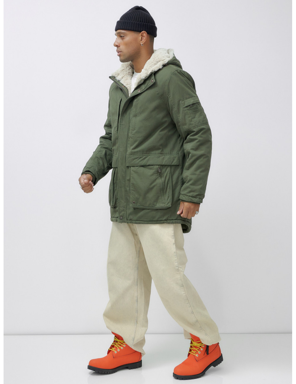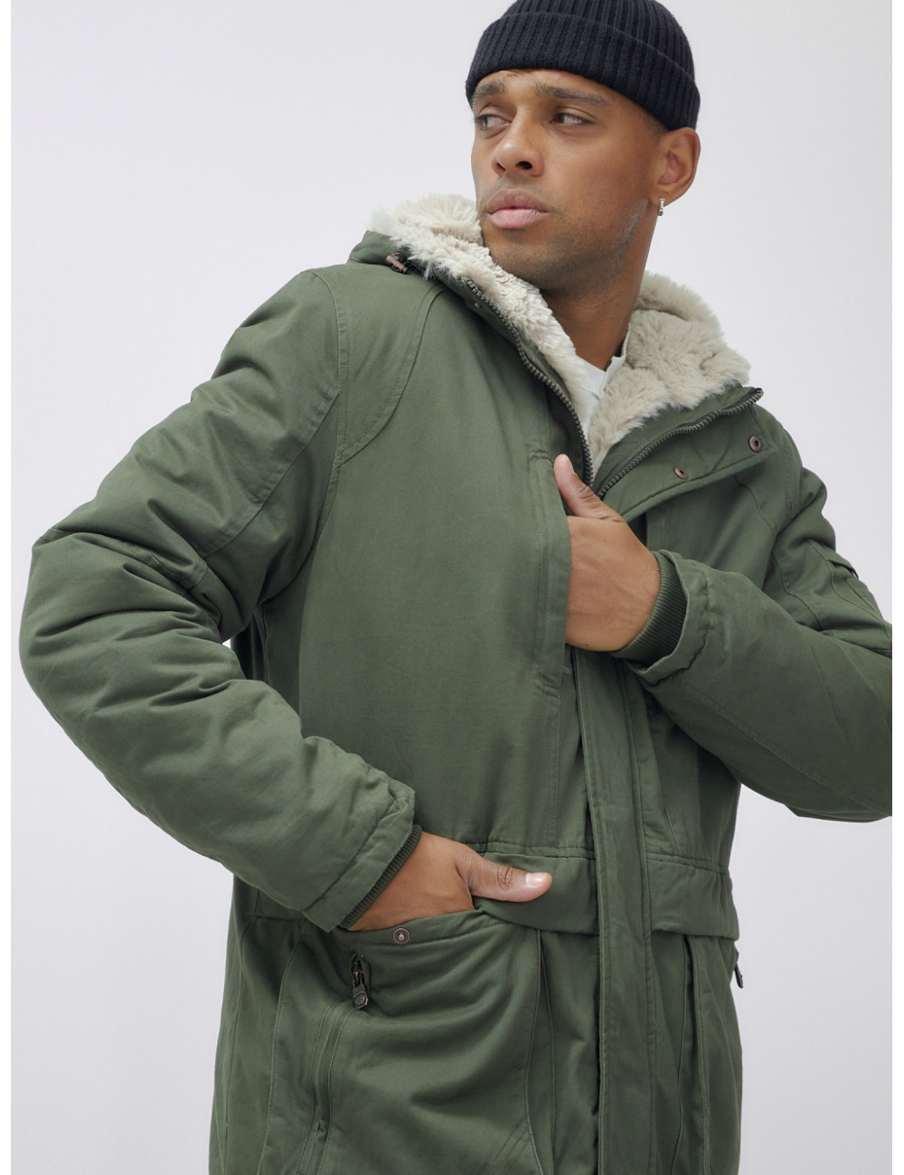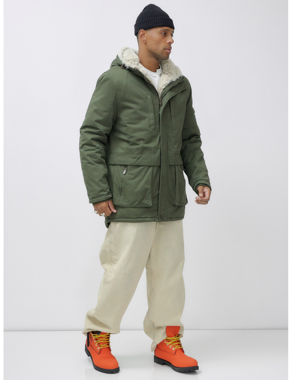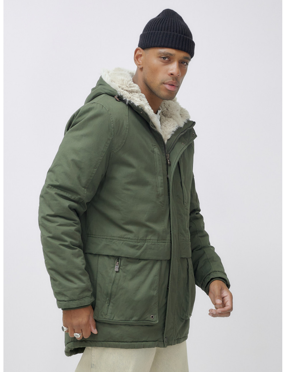 Доставка Мужская зимняя парка удлинённая с мехом, цвет хаки. по Тюмени и Тюменской области СДЭК