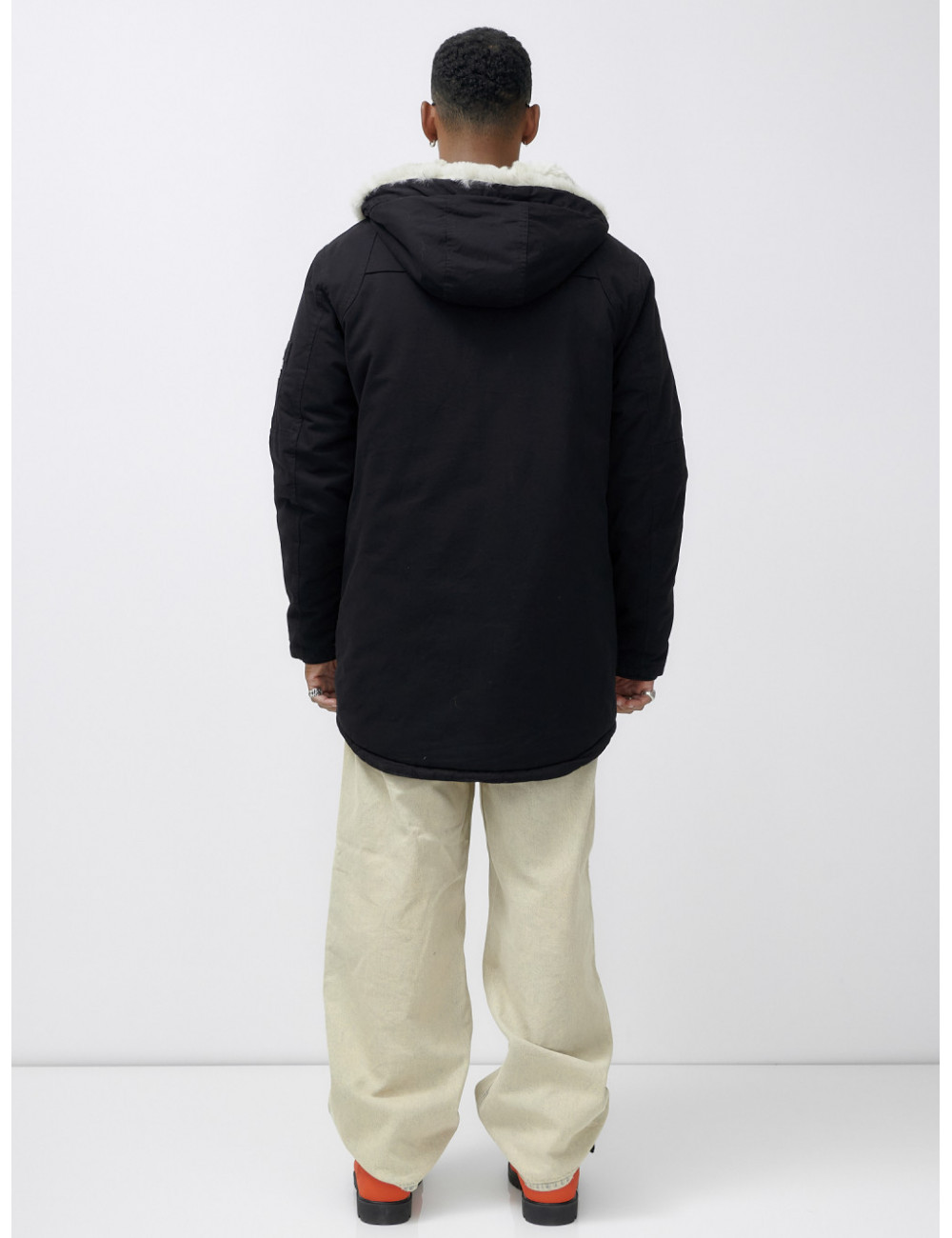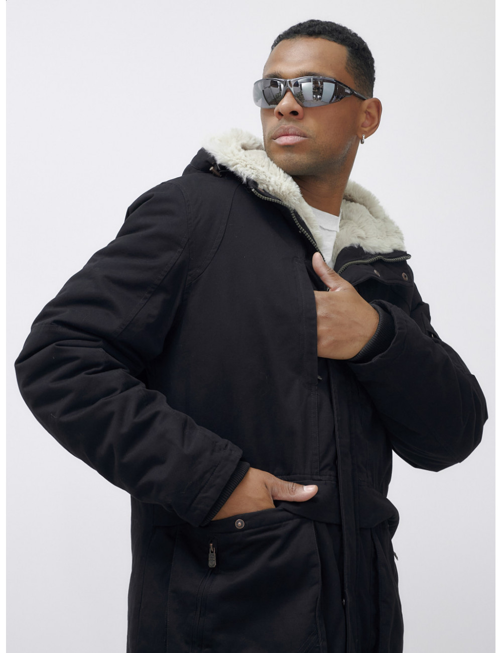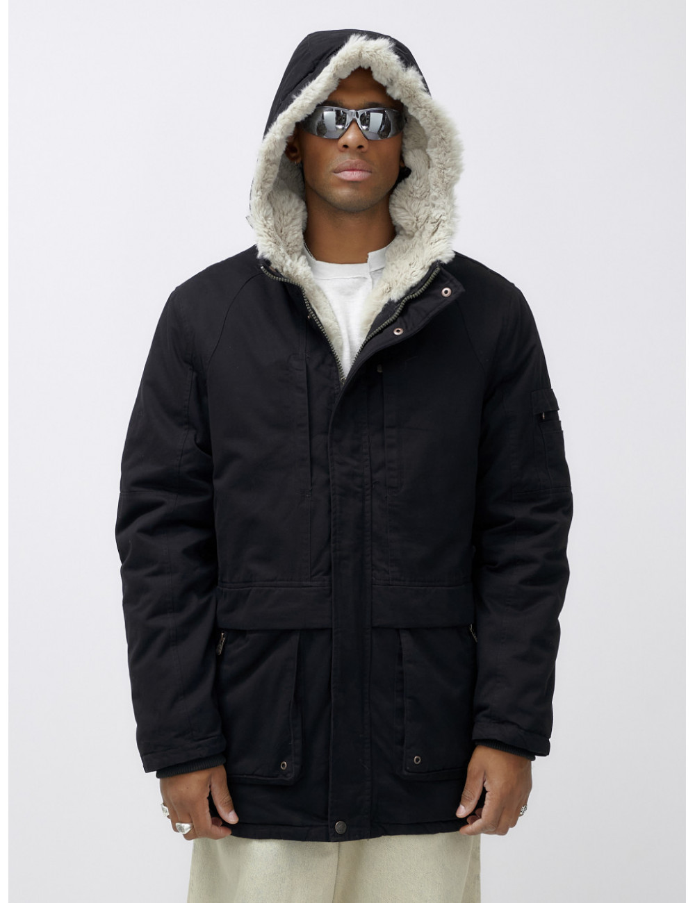 Доставка Мужская зимняя парка удлинённая с мехом, чёрная, для холодной погоды по Тюмени и Тюменской области СДЭК