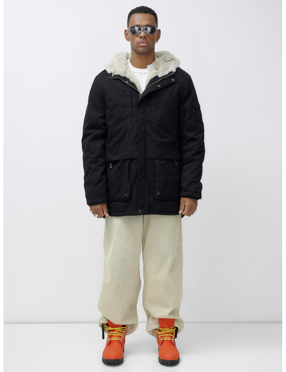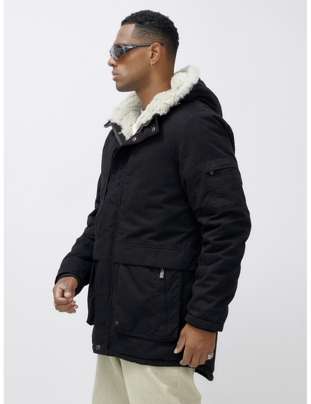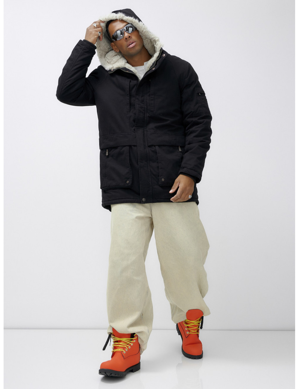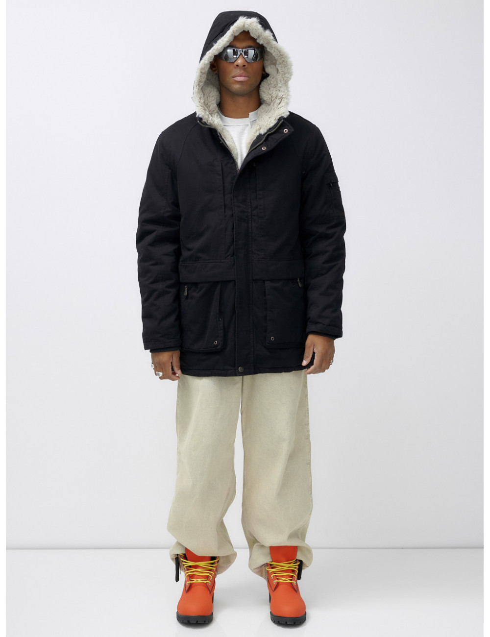 Доставка Мужская зимняя парка удлинённая с мехом, чёрная, для холодной погоды по Тюмени и Тюменской области СДЭК