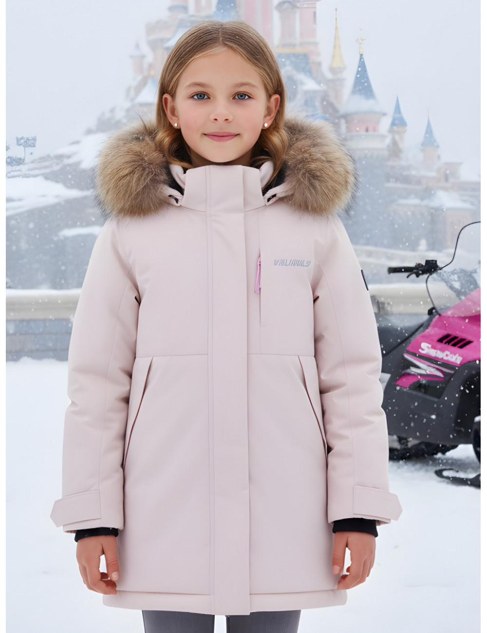 Стильная и тёплая зимняя парка от Ketsi станет отличным выбором для активных прогулок, школы и отдыха на свежем воздухе. Модель выполнена в нежном розовом цвете и дополнена объёмным капюшоном с роскошным мехом, который защищает от ветра и снега.