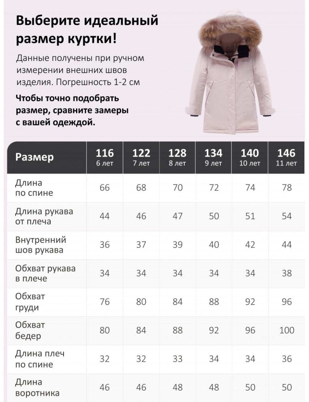 | Декоративные элементы | Манжеты, Мех, Карманы, Съемная опушка |
