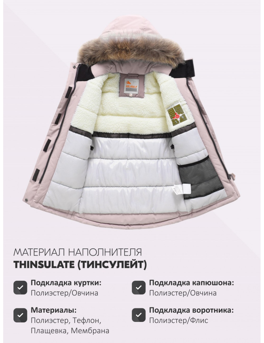 | Материал подкладки куртки | Полиэстер/Овчина |