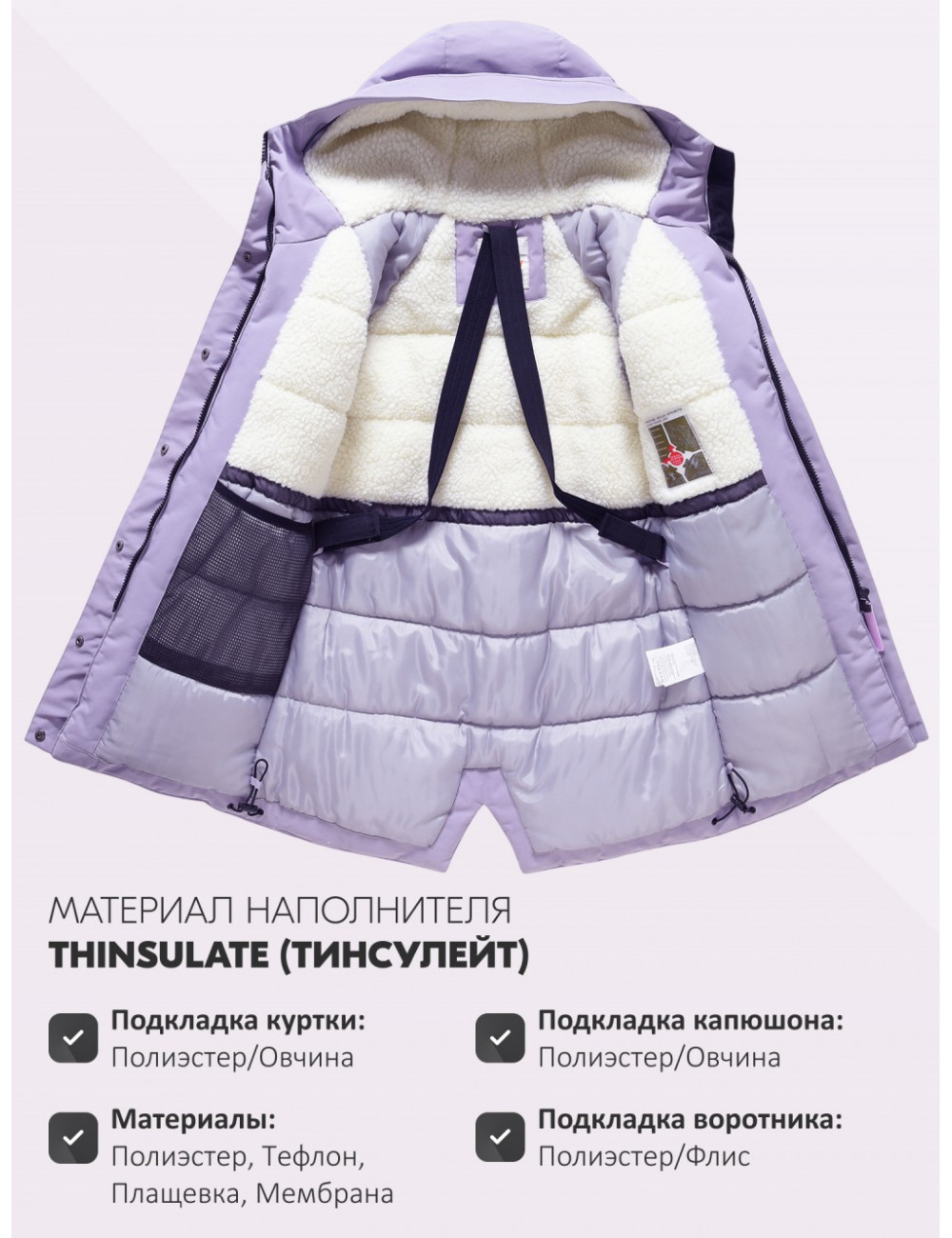 | Материал подкладки куртки | Полиэстер/Овчина |