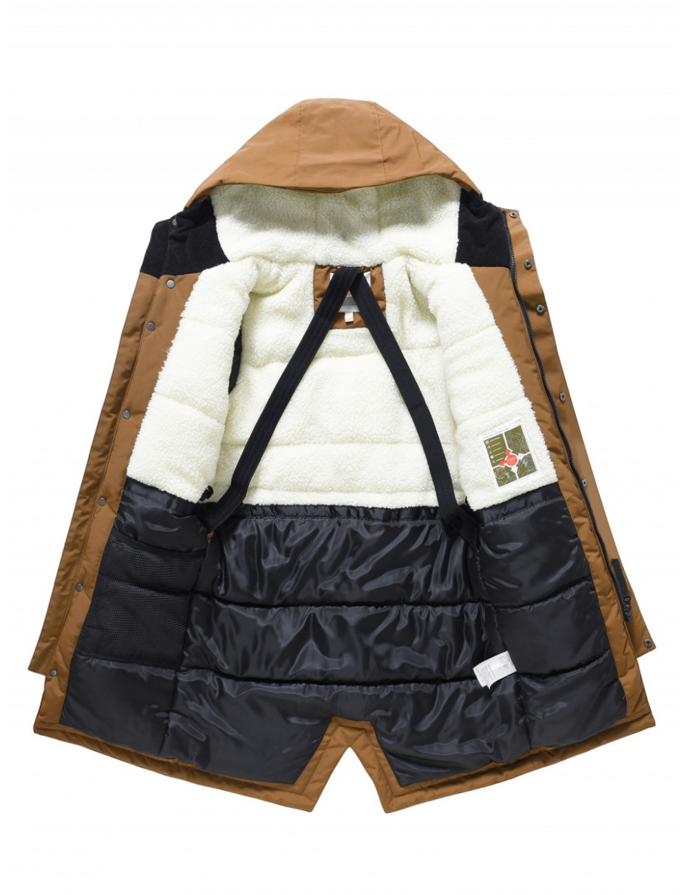 Эта парка представлена в стильных универсальных цветах — коричневом, тёмно-зелёном, чёрном и бежевом.