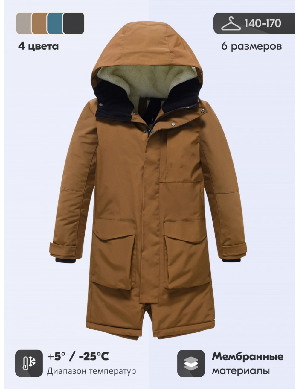 Эта тёплая и практичная парка станет отличным выбором для мальчика-подростка, который ценит комфорт, качество и стиль. Она подойдёт для школы, прогулок, активного отдыха и зимних видов спорта. Доставка Зимняя парка для мальчика с капюшоном, коричневого цвета, подростковая по Тюмени и Тюменской области СДЭК