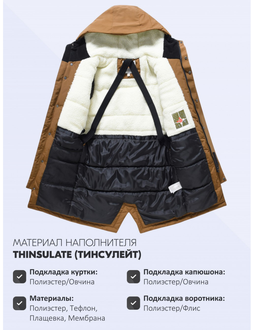 | Материал подкладки капюшона | Полиэстер/Овчина |