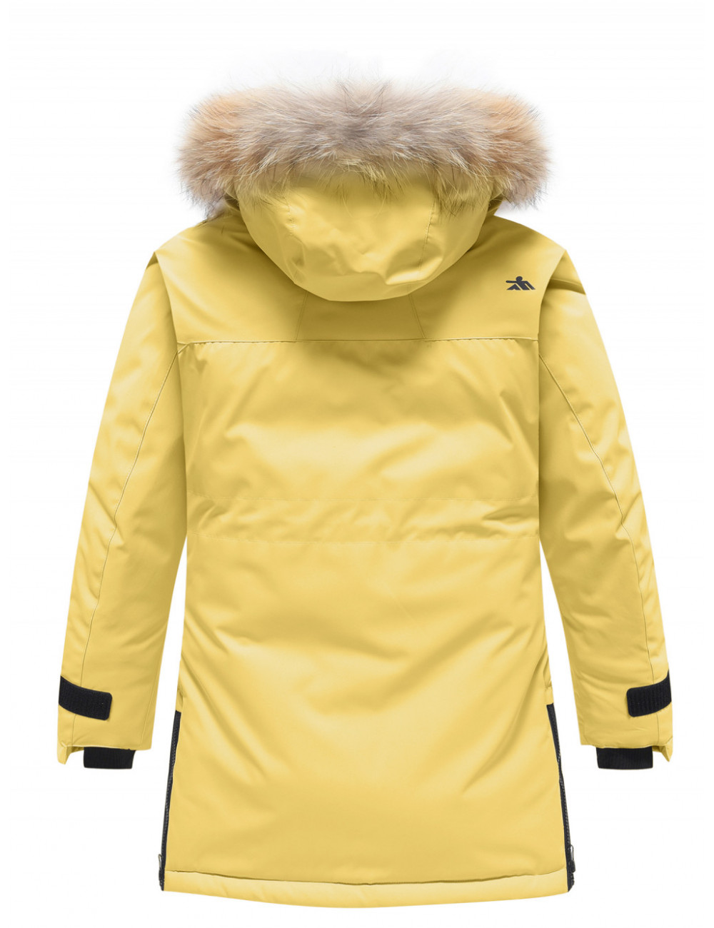 Парка отлично сочетается с джинсами, спортивными штанами и тёплыми свитерами. Она станет незаменимой частью гардероба вашей дочери в холодное время года. Доставка по Москве и Московской области Желтая зимняя парка-куртка для девочки-подростка с капюшоном и мехом