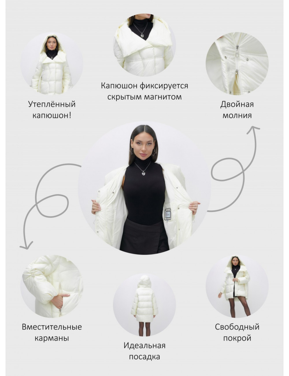 | Декоративные элементы | Капюшон, Карманы, Манжеты, Молния |