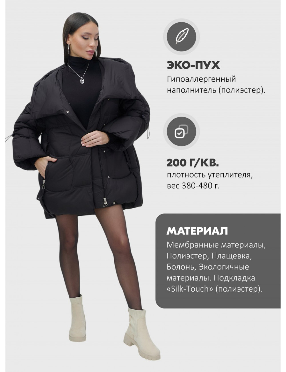 - Состав: 100% полиэстер и синтепон обеспечивают отличное тепло.