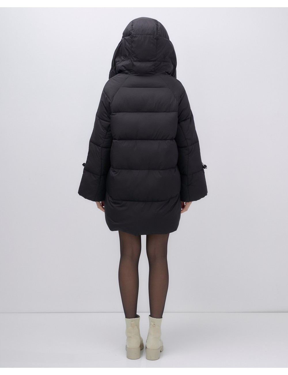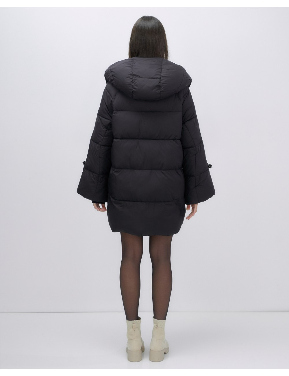 - Дизайн: средняя длина до бедра, прямой и свободный крой. Длинные рукава с манжетами и несъёмный капюшон придают куртке стильный вид.