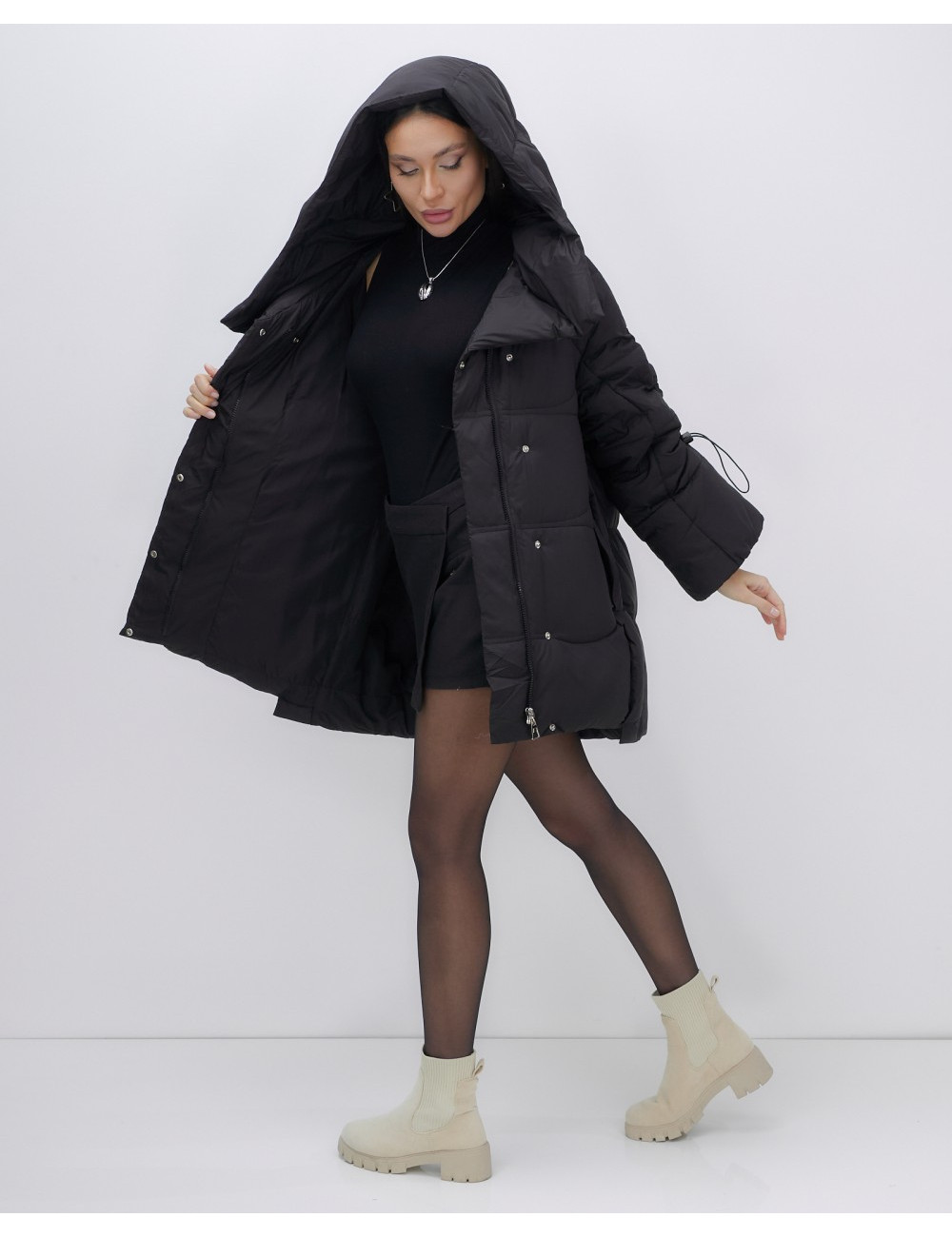 Доставка Пуховик женский зимний с капюшоном, чёрный. по Тюмени и Тюменской области СДЭК